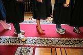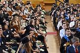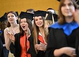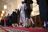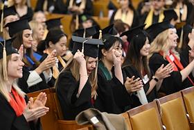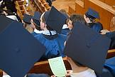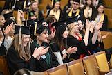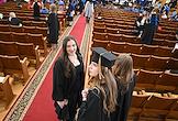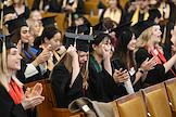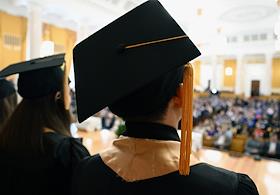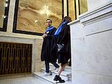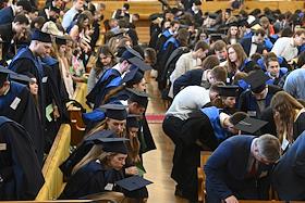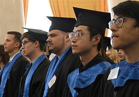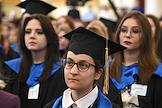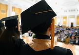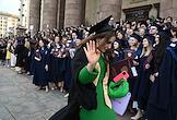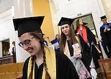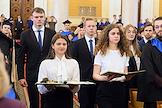 Церемония вручения дипломов с отличием выпускникам Московского государственного университета (МГУ) имени М.В.Ломоносова в главном здании МГУ. Жанровая фотография.