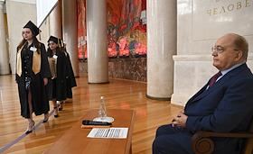 Церемония вручения дипломов с отличием выпускникам Московского государственного университета (МГУ) имени М.В.Ломоносова в главном здании МГУ.