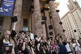 Церемония вручения дипломов с отличием выпускникам Московского государственного университета (МГУ) имени М.В.Ломоносова в главном здании МГУ. Выпускники с дипломами фотографируются после церемонии.