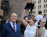 Церемония вручения дипломов с отличием выпускникам Московского государственного университета (МГУ) имени М.В.Ломоносова в главном здании МГУ. Ректор МГУ имени М.В.Ломоносова Виктор Садовничий (слева) после церемонии у здания университета.