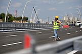 Пресс-тур на площадку строительства участка Московского скоростного диаметра от улицы Маршала Шестопалова до Павелецкого направления МЖД, который возводится в составе Юго-Восточной хорды (ЮВХ-8). Выездная проверка Мосгосстройнадзором хода строительства. Жанровая фотография.
