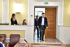 Регистрация кандидатов в мэры Москвы в Московской городской избирательной комиссии. Заместитель председателя Московской городской избирательной комиссии Дмитрий Реут перед процедурой регистрации.