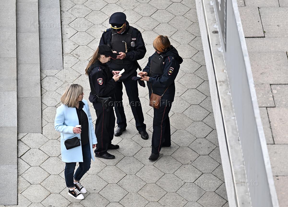 The situation in Moscow during the regime of the counter-terrorist operation (CTO). Police officers during a document check.