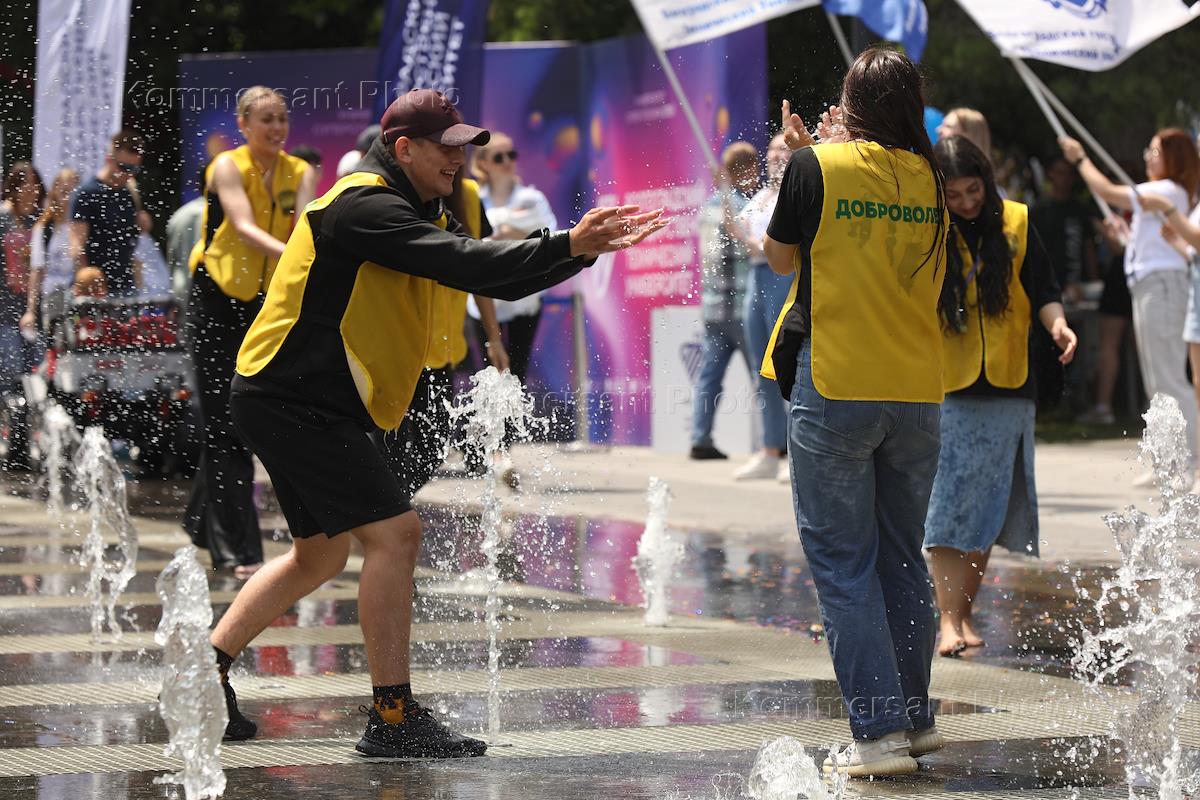 Молодежный фестиваль "Три Четыре" в рамках празднования Дня молодежи на Центральной набережной. Участники на фестивале.