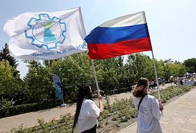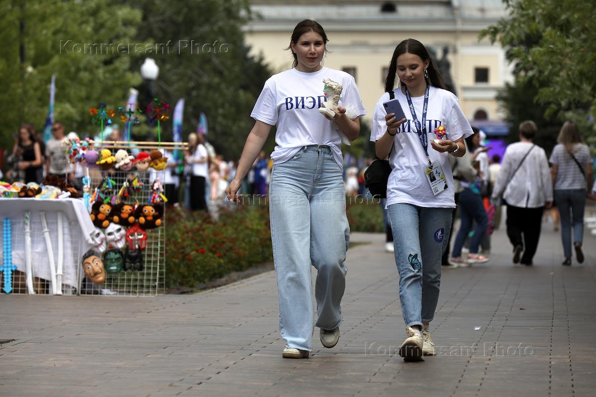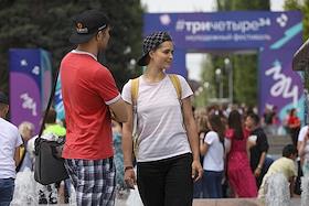 Молодежный фестиваль "Три Четыре" в рамках празднования Дня молодежи на Центральной набережной. Участники на фестивале.