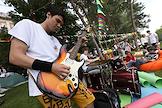 Молодежный фестиваль "Три Четыре" в рамках празднования Дня молодежи на Центральной набережной. Музыканты во время выступления.