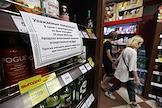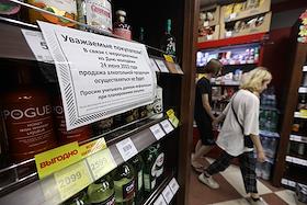 Молодежный фестиваль "Три Четыре" в рамках празднования Дня молодежи на Центральной набережной. Жанровая фотография. Объявление в магазине о то, что продажа алкогольных напитков в связи с мероприятием осуществляться не будет.