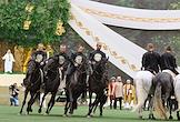 Национальный ежегодный татаро-башкирский праздник "Сабантуй" в жилом массиве Мирный в Казани. Жанровая фотография. Выступление участников наездников на лошадях.