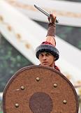 Национальный ежегодный татаро-башкирский праздник "Сабантуй" в жилом массиве Мирный в Казани. Жанровая фотография. Мужчина в национальн6огм костюме на празднике.