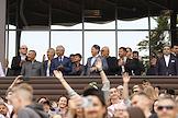 Национальный ежегодный татаро-башкирский праздник "Сабантуй" в жилом массиве Мирный в Казани. Мэр Казани, председатель Казанской городской думы Ильсур Метшин (в центре) и глава Республики Татарстан Рустам Минниханов (второй слева) на празднике.