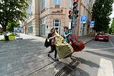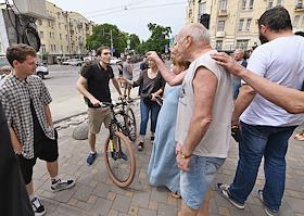 Ситуация в Ростове-на-Дону. Молодые люди с музыкальными инструментами идут по пешеходному переходу.
