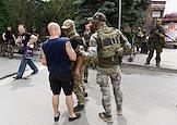 Ситуация в Ростове-на-Дону. Военнослужащий и местные жители на улице города.