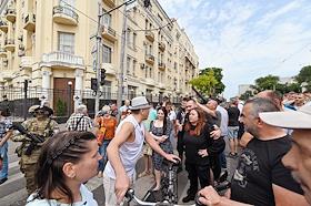 Ситуация в Ростове-на-Дону. Военнослужащие и местные жители на улице города.