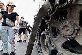 Ситуация в Ростове-на-Дону. Военная техника и местные жители на улице города.