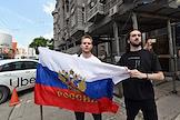 Ситуация в Ростове-на-Дону. Местные жители с флагами с логотипом "ЧВК "Вагнер" на улице города.