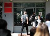 Церемония отправки призывников на срочную службу от военкомата Советского района. Жанровая фотография. Призывники у здания военкомата.