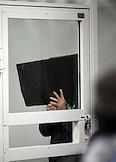 Sentencing Alexander Mavridi, accused of murdering Vladimir Marugov, owner of the Myasnaya Empire and Ozeretsky sausages factories, and kidnapping lawyer Alexei Zavgorodniy, in the Moscow Regional Court. Police officer during a court session.