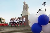 Городской праздник выпускников средних школ "Выпускник-2023". Школьники во время поздравления выпускников на площади Ленина.