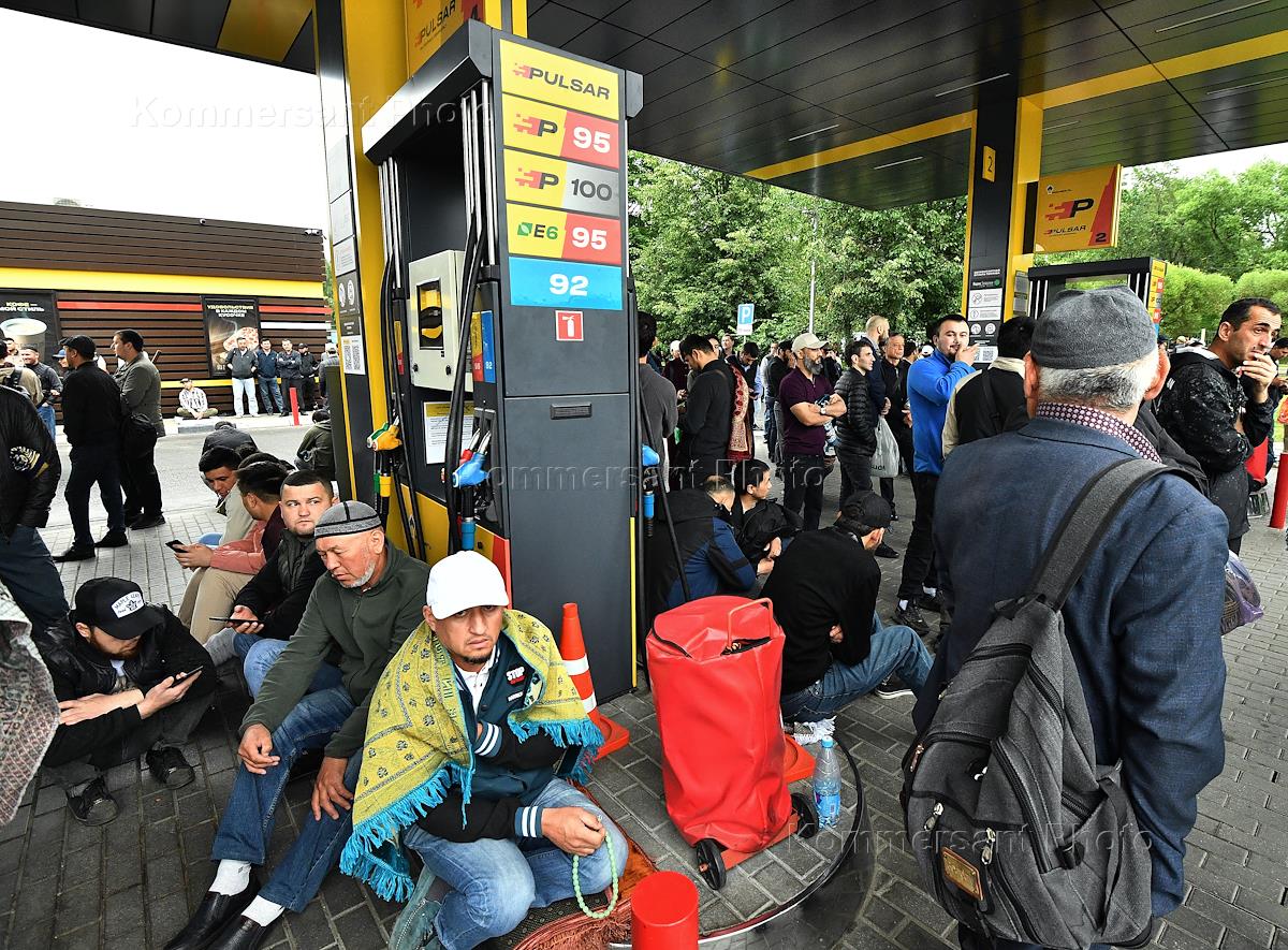 Feast of the Sacrifice of Eid al-Adha at the Memorial Mosque. Genre photography. Believers before the start of the holiday prayer (gaet-prayer).