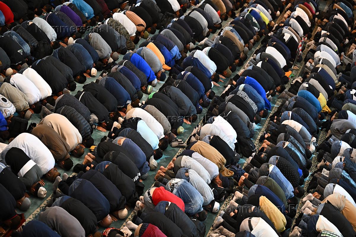Feast of the Sacrifice of Eid al-Adha at the Moscow Cathedral Mosque. Believers during prayer.