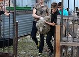 Праздник жертвоприношения Курбан-Байрам. Жанровая фотография. Жертвенные животные в комплексе для заклания жертвенных животных.