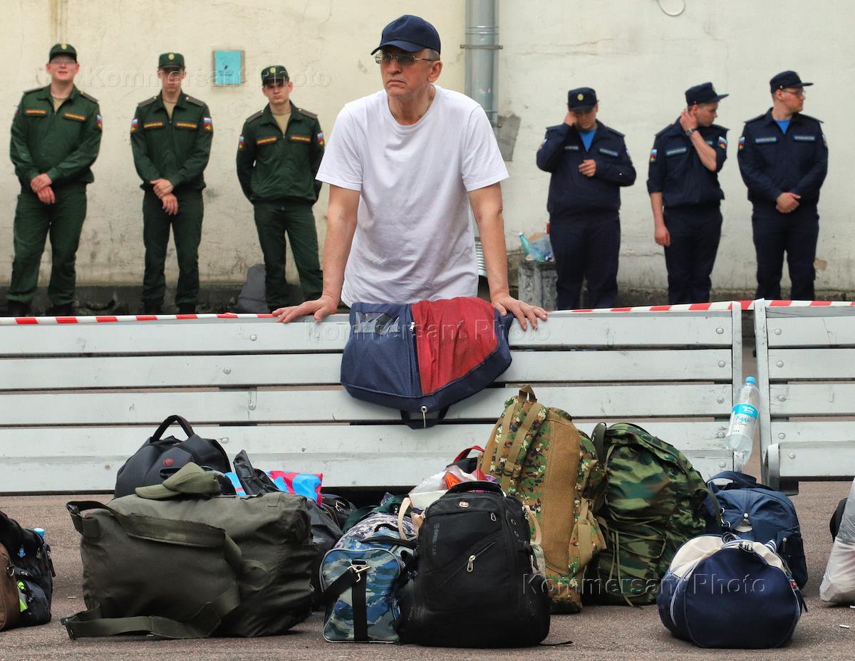 The ceremony of sending volunteers who entered military service under a contract to the places of service from the Leningrad Regional Military Commissariat on the embankment of the Fontanka River.