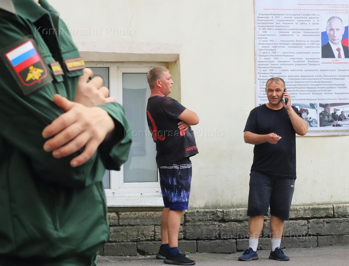 The ceremony of sending volunteers who entered military service under a contract to the places of service from the Leningrad Regional Military Commissariat on the embankment of the Fontanka River.