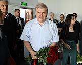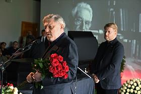 Церемония прощания с одним из основателей партии "Яблоко", соавтором текса Конституции России, Виктором Шейнисом в офисе партии "Яблоко". Председатель политической партии "Яблоко" Николай Рыбаков на церемонии.