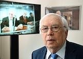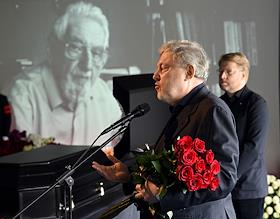 Церемония прощания с одним из основателей партии "Яблоко", соавтором текса Конституции России, Виктором Шейнисом в офисе партии "Яблоко". Политик Вячеслав Игрунов (слева) на церемонии.