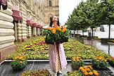 Традиционный Фестиваль цветов в ГУМе. Актриса Лиза Климова на фестивале.