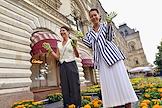 Традиционный Фестиваль цветов в ГУМе. Участники на фестивале.