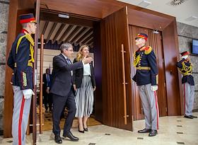 Официальный визит председателя Национального собрания Франции Яэль Браун-Пиве в Республику Молдова. Председатель Национального собрания Франции Яэль Браун-Пиве (в центре) и председатель парламента Республики Молдова Игорь Гросу (второй слева) перед церемонией подписания Меморандума о взаимопонимании между парламентами Франции и Молдовы.
