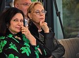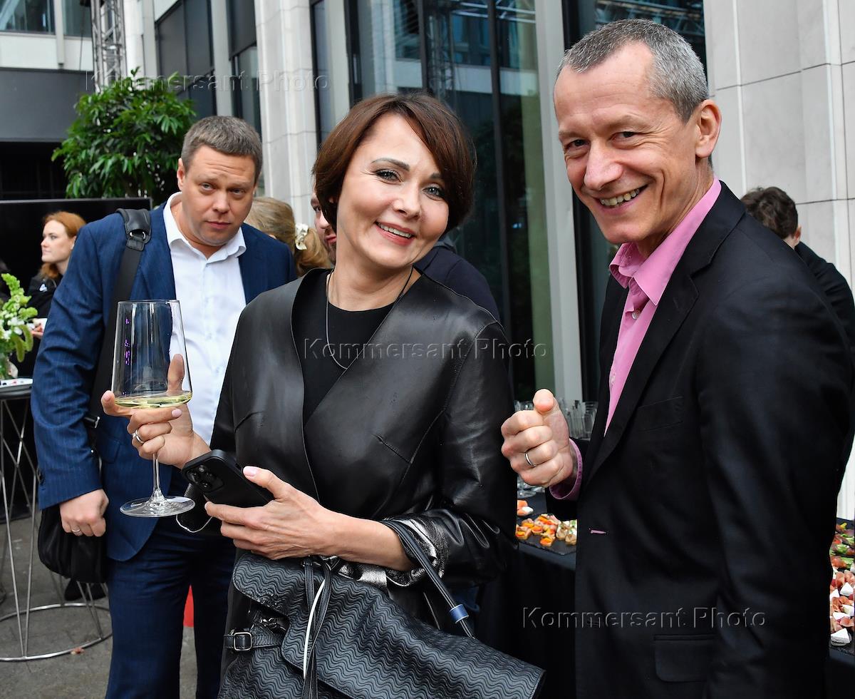 Public talk ("Публичный разговор") "Город нового времени: как создать самодостаточный субцентр" на территории многофункционального комплекса Slava. Коллекционер и издатель Пьер-Кристиан Броше (слева) и директор Государственного музея изобразительных искусств (ГМИИ) имени Пушкина Елизавета Лихачева (в центре) перед началом дискуссии.