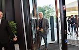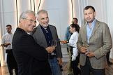 Public talk ("Публичный разговор") "Город нового времени: как создать самодостаточный субцентр" на территории многофункционального комплекса Slava. Коллекционер и издатель Пьер-Кристиан Броше (слева) и председатель совета директоров компании "Дымов" Вадим Дымов (в центре) перед началом дискуссии.