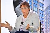 Public talk ("Публичный разговор") "Город нового времени: как создать самодостаточный субцентр" на территории многофункционального комплекса Slava. Директор Государственного музея изобразительных искусств (ГМИИ) имени Пушкина Елизавета Лихачева во время дискуссии.