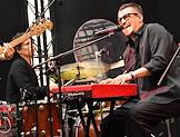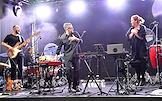 Public talk ("Публичный разговор") "Город нового времени: как создать самодостаточный субцентр" на территории многофункционального комплекса Slava. Основатель группы Therr Maitz Антон Беляев (в центре) и солистка группы Therr Maitz Виктория Жук (справа) во время выступления.