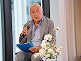 Public talk ("Публичный разговор") "Город нового времени: как создать самодостаточный субцентр" на территории многофункционального комплекса Slava. Телеведущий Владимир Познер во время дискуссии.