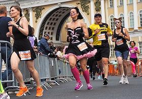 II костюмированный Забег Петербургских Котов прошел на Дворцовой площади. Участник с непременным условием элемент "кошачей" атрибутики в одежде - во время забега.