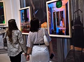Проект "Дом и сад" художника Сергея Сапожникова в Доме культуры "ГЭС-2". Посетители на выставке.