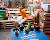 День открытых дверей в благотворительном фонде "Банк еды "Русь". Жанровая фотография. Овощи на коробке.