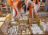 День открытых дверей в благотворительном фонде "Банк еды "Русь". Жанровая фотография. Коробки с продуктами.