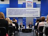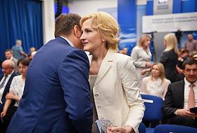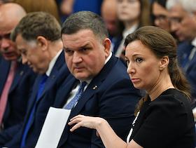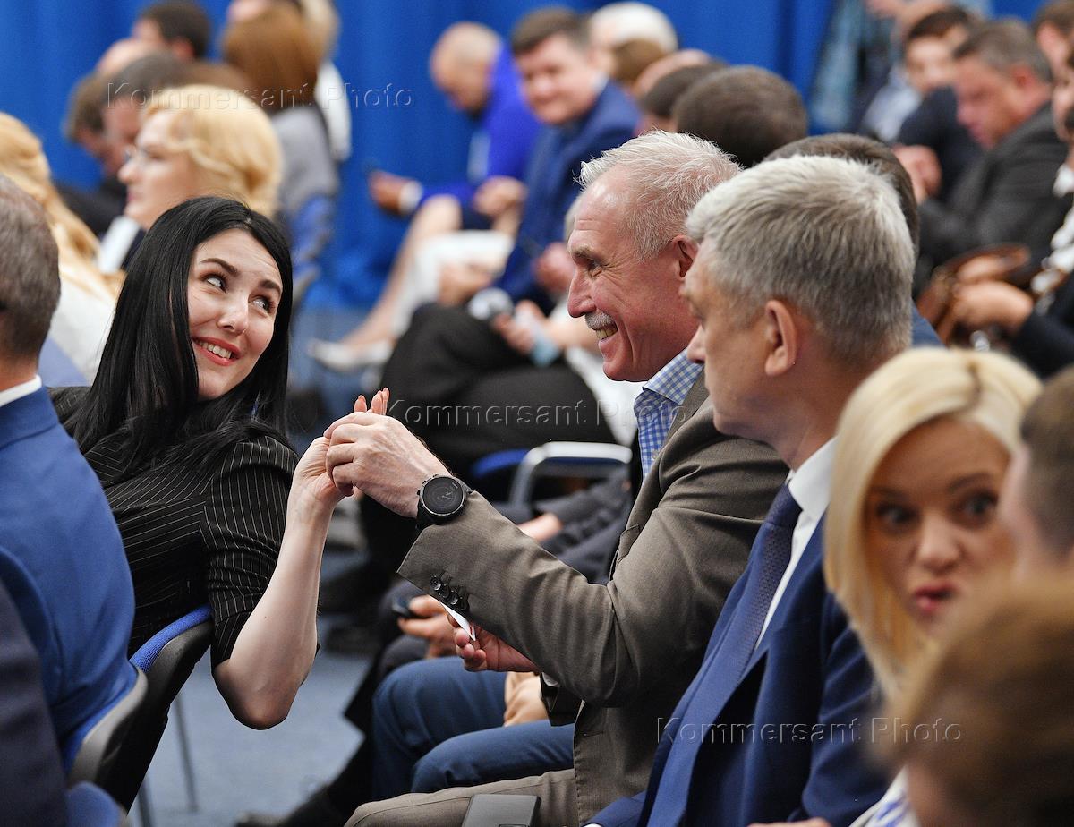 Заседание Президиума Генерального совета политической партии "Единая России" в Центральном исполнительном комитете партии. Заместитель председателя Государственной думы России Анна Кузнецова (справа) и представитель в Совете Федерации России от исполнительного органа государственной власти Ленинградской области Сергей Перминов (второй справа) во время заседания.