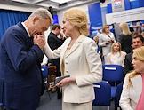 Заседание Президиума Генерального совета политической партии "Единая России" в Центральном исполнительном комитете партии. Представитель в Совете Федерации России от исполнительного органа государственной власти Луганской Народной Республики Дарья Лантратова во время заседания.