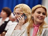 Заседание Президиума Генерального совета политической партии "Единая России" в Центральном исполнительном комитете партии. Заместитель председателя Государственной думы России Ирина Яровая (справа) во время заседания.