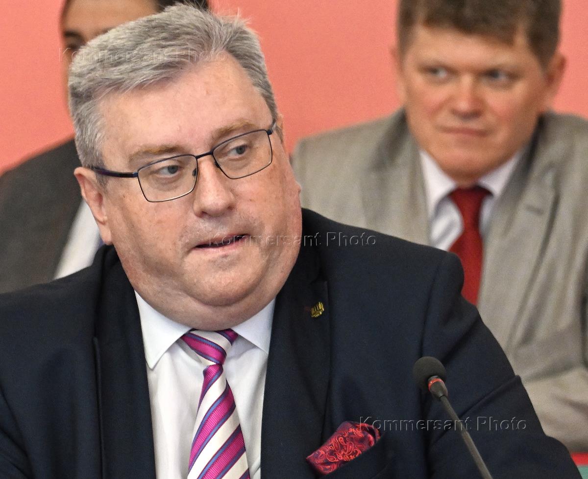 Церемония вручения дипломов с отличием выпускникам российских педагогических вузов в Московском педагогическом государственном университете (МПГУ). Министр просвещения России Сергей Кравцов (слева) перед началом церемонии.