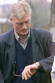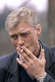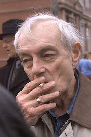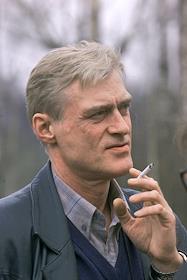 Tovstonogov Bolshoi Drama Theater Art Director Kirill Lavrov smokes during the action of rebirth of a cherry orchard at the manor of K. Stanislavsky 'Lyubimovka'. The action took place in the framework of the III World Theater Olympiad at the IV Chekhov World Theater Festival.