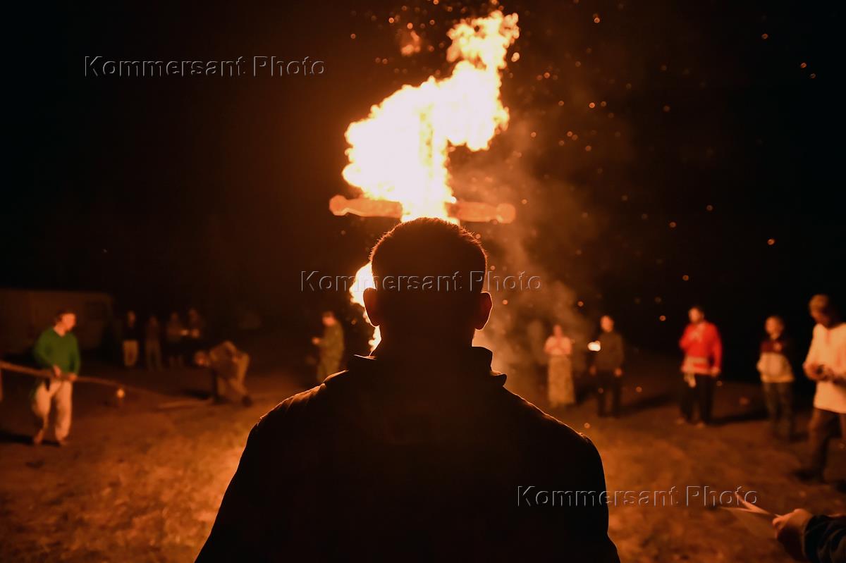Празднование народного праздника восточных славян "Иван Купала". Члены славянской языческой общины во время празднования в поселке Бибиха.