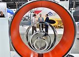 Рабочая поездка председателя правительства России Михаила Мишустина в Екатеринбург. Международная промышленная выставка "Иннопром-2023" (INNOPROM) в Международном выставочном центре (МВЦ) "Екатеринбург-Экспо". Жанровая фотография. Стенд китайского автомобильного завода DONGFENG.