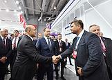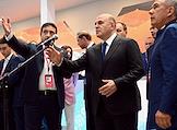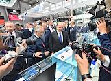Рабочая поездка председателя правительства России Михаила Мишустина в Екатеринбург. Международная промышленная выставка "Иннопром-2023" (INNOPROM) в Международном выставочном центре (МВЦ) "Екатеринбург-Экспо". Жанровая фотография.