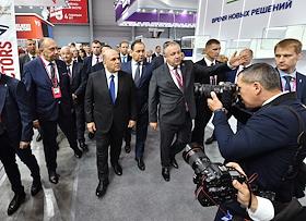 Рабочая поездка председателя правительства России Михаила Мишустина в Екатеринбург. Международная промышленная выставка "Иннопром-2023" (INNOPROM) в Международном выставочном центре (МВЦ) "Екатеринбург-Экспо". Главная стратегическая сессия "Устойчивое производство. Стратегия обновления".